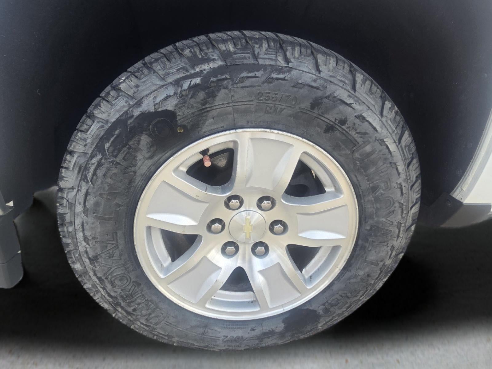 EMISSIONS, FEDERAL REQUIREMENTS, ENGINE, 4.3L FLEXFUEL ECOTEC3 V6 WITH ACTIVE FUEL MANAGEMENT, DIRECT INJECTION AND VARIABLE VALVE TIMING, TRANSMISSION, 6-SPEED AUTOMATIC, ELECTRONICALLY CONTROLLED, GVWR, 6900 LBS. (3130 KG), REAR AXLE, 3.23 RATIO, WHEELS, 17"" X 8"" (43.2 CM X 20.3 CM) BRIGHT MACHINED ALUMINUM, TIRES, P255/70R17 ALL-SEASON, BLACKWALL, PAINT, SOLID, SEATS, FRONT 40/20/40 SPLIT-BENCH, 3-PASSENGER, AVAILABLE IN CLOTH OR LEATHER, JET BLACK, CLOTH SEAT TRIM, AUDIO SYSTEM, CHEVROLET MYLINK RADIO WITH 8"" DIAGONAL COLOR TOUCH-SCREEN, AM/FM STEREO, TRAILERING PACKAGE, TEXAS EDITION, E85 FLEXFUEL CAPABLE OF RUNNING ON UNLEADED OR UP TO 85% ETHANOL, DIFFERENTIAL, HEAVY-DUTY LOCKING REAR, WHEEL, FULL-SIZE SPARE, 17"" X 7"" (43.2 CM X 17.8 CM) ALUMINUM, FOG LAMPS, THIN PROFILE LED, LICENSE PLATE KIT, FRONT, SEAT ADJUSTER, DRIVER 10-WAY POWER, REMOTE VEHICLE STARTER SYSTEM, THEFT-DETERRENT SYSTEM, UNAUTHORIZED ENTRY, AIR CONDITIONING, DUAL-ZONE AUTOMATIC CLIMATE CONTROL, DEFOGGER, REAR-WINDOW ELECTRIC, POWER OUTLET, 110-VOLT AC