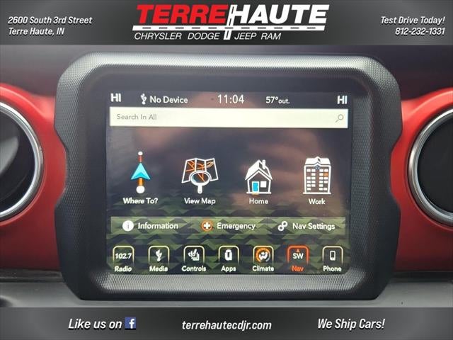 ENGINE: 2.0L I4 DOHC DI TURBO ETORQUE, TRANSMISSION: 8-SPEED AUTOMATIC (850RE), QUICK ORDER PACKAGE 28R, WHEELS: 17"" X 7.5"" BLACK W/POLISHED LIP, TIRES: LT285/70R17C BSW OFF-ROAD, BLACK CLEARCOAT, BLACK, PREMIUM CLOTH LOW-BACK BUCKET SEATS, 8.4"" RADIO & PREMIUM AUDIO GROUP, COLD WEATHER GROUP, LED LIGHTING GROUP, SAFETY GROUP, TRAILER TOW & HD ELECTRICAL GROUP, PREMIUM BLACK SUNRIDER SOFT TOP, RADIO: UCONNECT 4C NAV W/8.4"" DISPLAY, ALPINE PREMIUM AUDIO SYSTEM, REMOTE START SYSTEM, MOPAR ALL-WEATHER FLOOR MATS, MOPAR CARGO TUB LINER