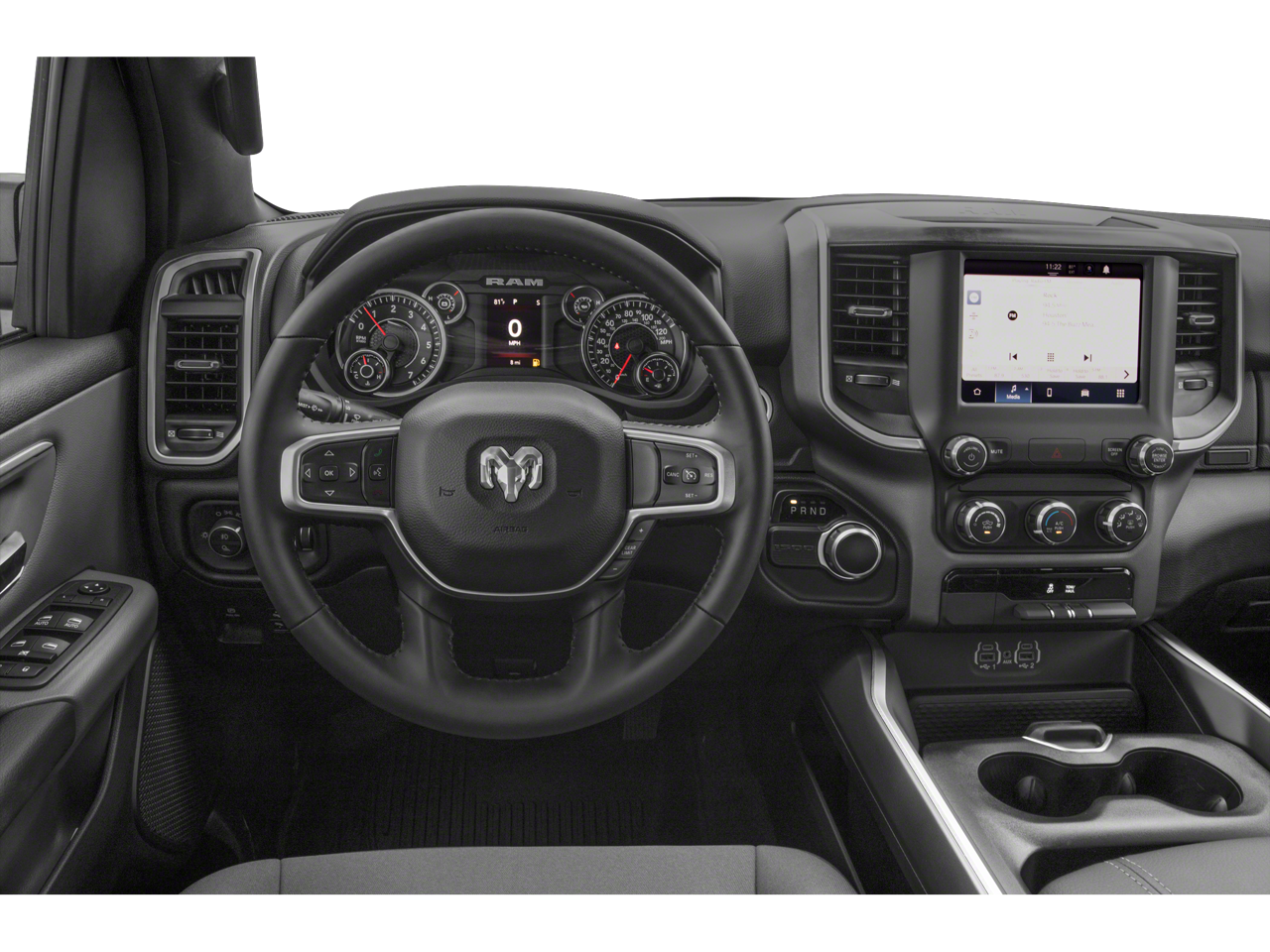 ENGINE: 5.7L V8 HEMI MDS VVT ETORQUE, TRANSMISSION: 8-SPEED AUTOMATIC (8HP75), QUICK ORDER PACKAGE 27Z BIG HORN, 3.21 REAR AXLE RATIO, WHEELS: 20"" X 9"" ALUMINUM CHROME CLAD (WRK), TIRES: 275/55R20 BSW ALL SEASON, MONOTONE PAINT, DIAMOND BLACK CRYSTAL PEARLCOAT, DIESEL GRAY/BLACK, CLOTH BENCH SEAT, GVWR: 7,100 LBS, BED UTILITY GROUP, BIG HORN LEVEL 1 EQUIPMENT GROUP, FRONT LICENSE PLATE BRACKET, WHEEL TO WHEEL SIDE STEPS, PICK-UP BOX LIGHTING, RADIO: UCONNECT 5 W W/8.4"" DISPLAY, REMOTE START SYSTEM, MOPAR FRONT & REAR RUBBER FLOOR MATS, CLUSTER 7.0"" TFT COLOR DISPLAY, CONNECTED SERVICES DELETE CREDIT